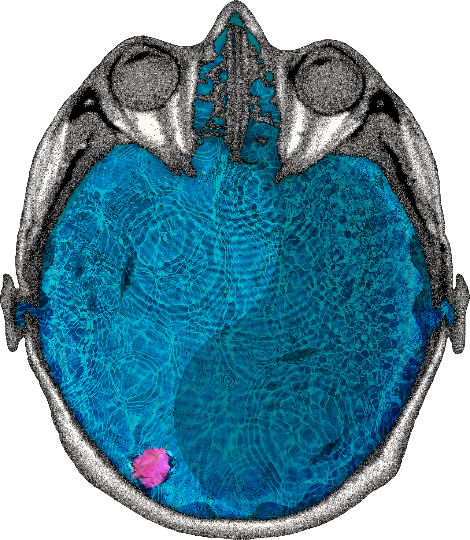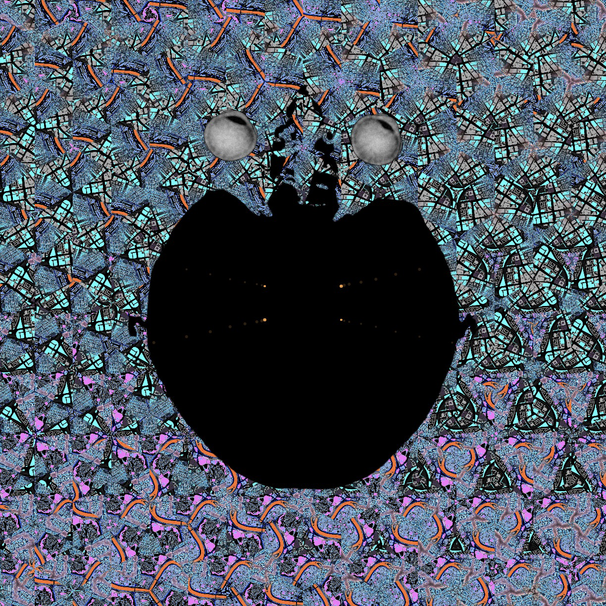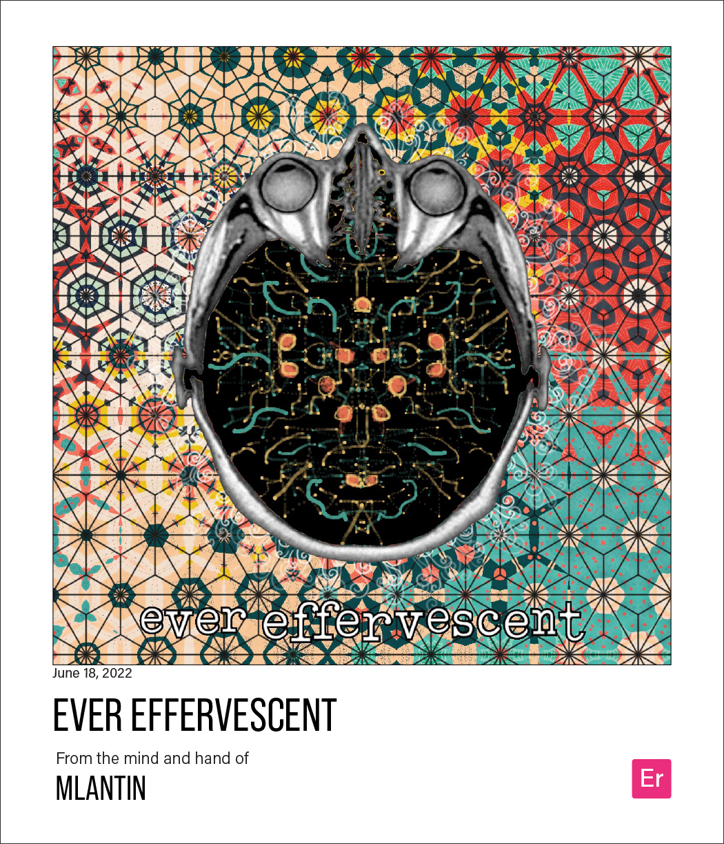 In my case, my first user journey through the prototype Inner Selfie found a glitch. Whether by excitability or ineptness, I broke the system to what Hanif later described to me as “the glitch of the missing skull.” Visually, in my portrait, I had literally lost my head! (that is, the program’s generic MRI of a skull went missing from view) My selfie above is a black void. It is missing its skull frame due to a programming glitch. Without the representational image of the skull that frames it, my being, in a sense, expanded outward beyond corporeal representation to the resplendent surrounding blue, orange and purple wallpaper. I look at it today as a representation of a liberating possibility with spatial depth too: from a philosophical perspective, the black void is warm and inviting to me. This glitch is my way to disrupt the notion of a common, definable head space. Indeed, I like to imagine that I am turned into a glitchy machine: a museum glitcher reconning with their museum.